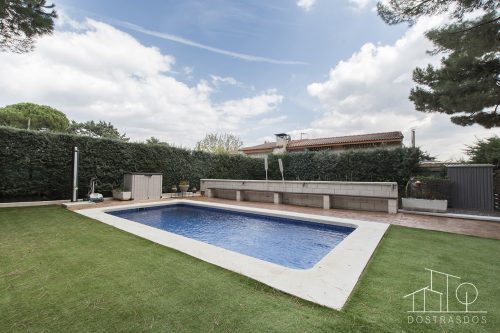 En la zona exterior destacan sus amplios jardines, una piscina, una casita destinada a vestuarios y un garaje con capacidad para dos coches.