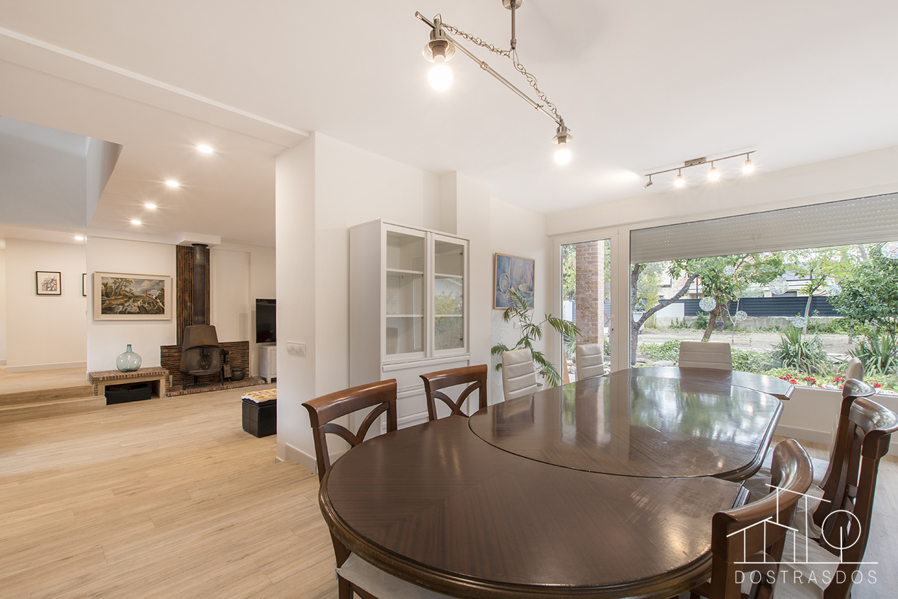 Casa independiente ubicada en Galapagar. La vivienda, recién reformada, cuenta con aerotermia y placas solares. Está construida sobre una parcela de 1.700 metros cuadrados y cuenta con 300 metros cuadrados útiles.
