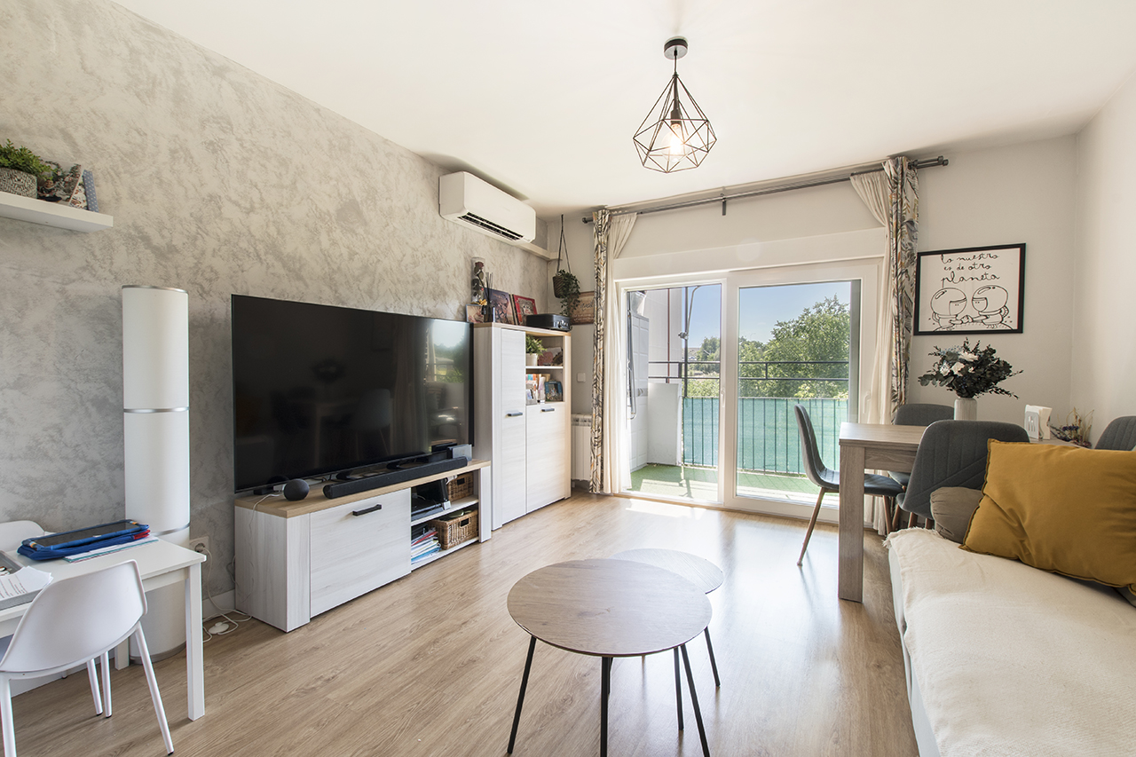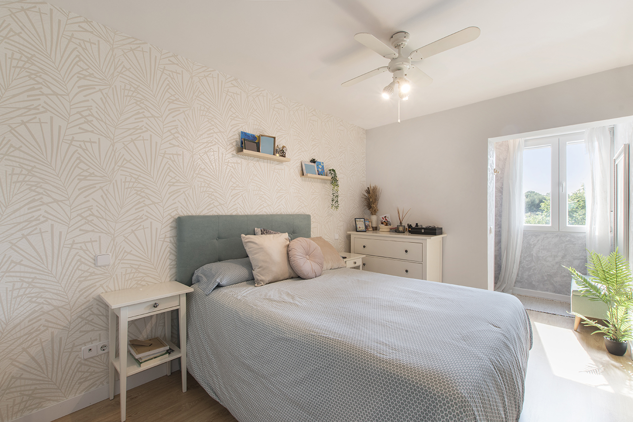 Dispone de 3 habitaciones, entre las cuales destaca la principal, equipada con un práctico vestidor. El baño, completamente renovado, es de estilo doble, lo que facilita el uso compartido. Además, la vivienda cuenta con aire acondicionado, algo imprescindible para el confort durante los meses más calurosos del año.